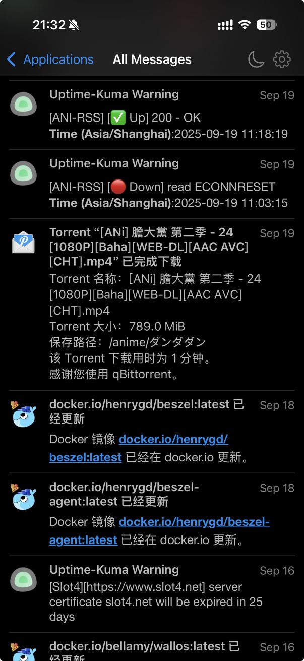 之前我购买了 iOS 版 Pushover,用来把家庭服务器上的一些通知类消息传递到我的手机上。Pushover 提供包括 webhook、软件集成和电子邮件等丰富的触发手段和详尽的相关文档说明,可以在各种服务里集成 Pushover 推送通知,且免费试用到期后仅支付 38 元就可以于单个平台上一次性买断,我非常喜欢。