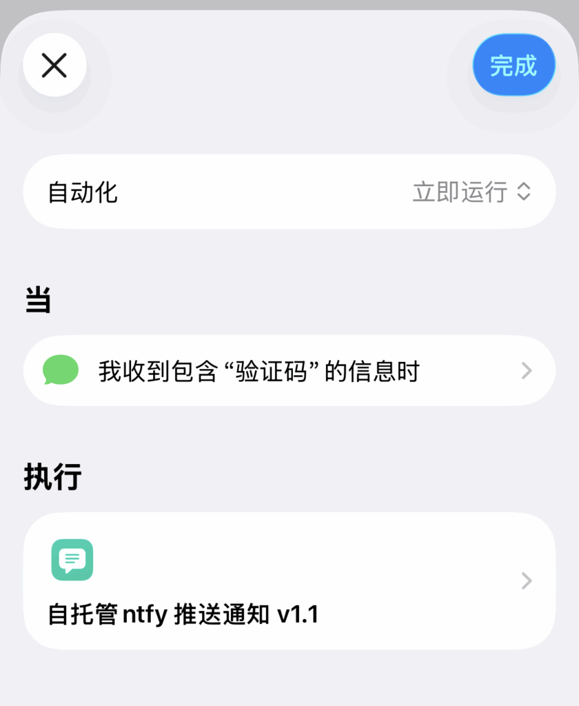 在手机上创建一个简单的自动化就可以把包含“验证码”三个字的短信转发到 ntfy。
