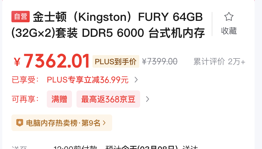 本来四年换一台电脑算是比较合理的节奏,不过我在去年放弃了原本定于今年的升级计划,因为 DDR5 内存太贵了——对,虽然比较反直觉,但去年就很贵,不信的话可以看这条一年之前的记事。都说 DDR5 涨上天,但只看京东自营金士顿 DDR5 的话也就(?)涨了三倍左右,国产品牌的 DDR4 内存可是能涨五六倍的,再次向大家证明了国产才是涨价割韭菜最起劲的厂商。